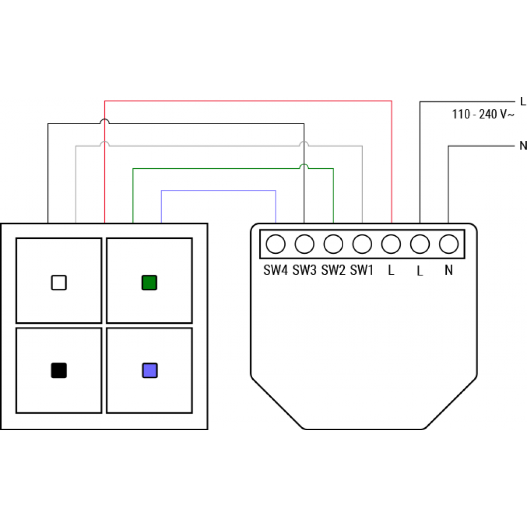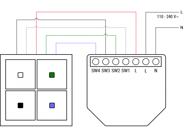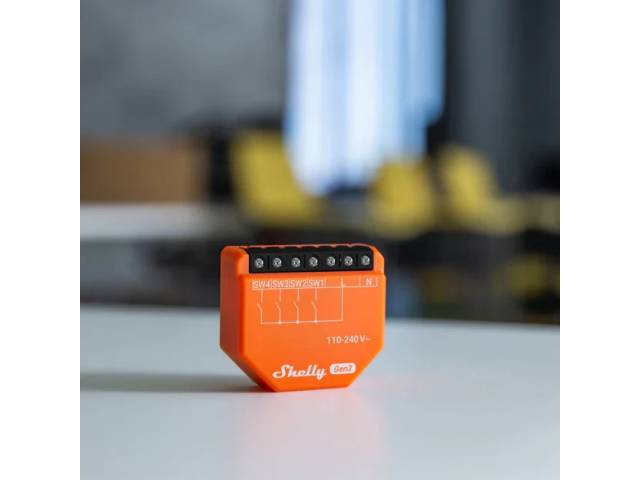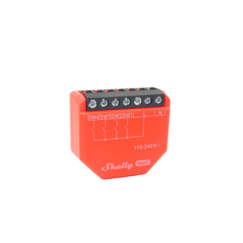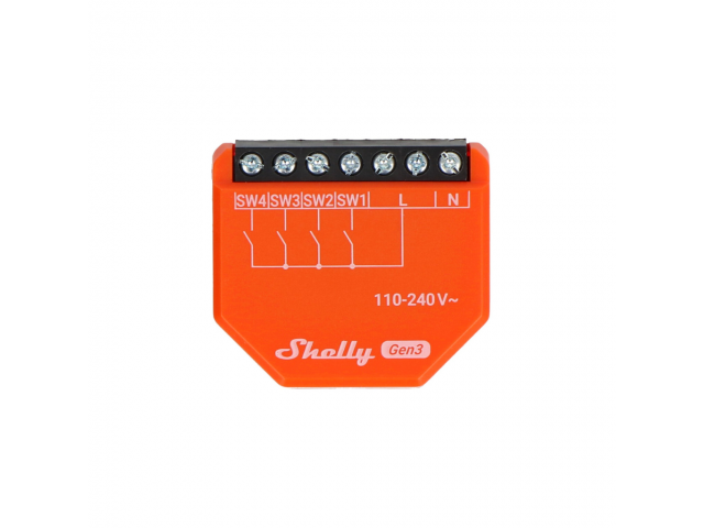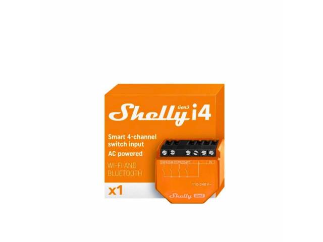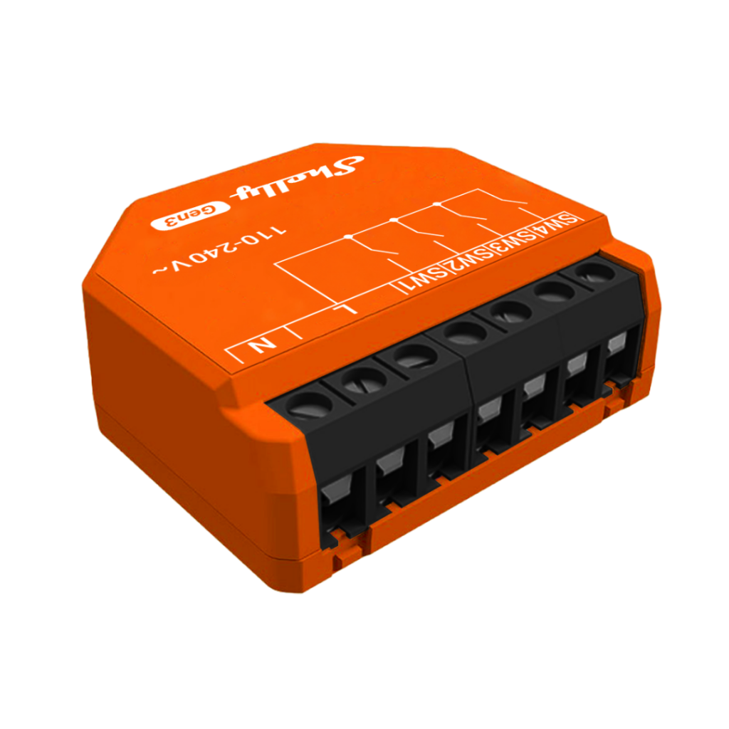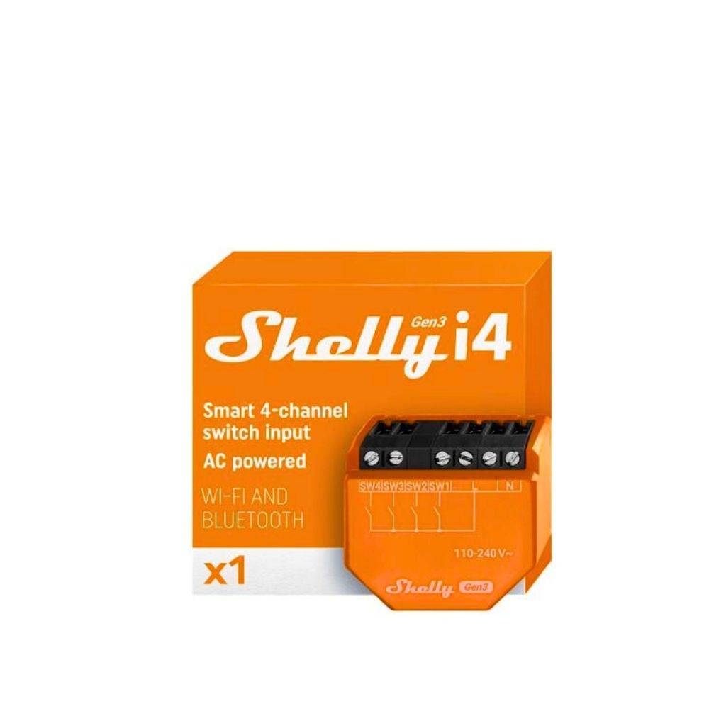 Puede usar Shelly i4 Gen3 para controlar otros interruptores, sensores o dispositivos Shelly conectados, controlados por HTTP y MQTT. Con un tamaño compacto que cabe detrás de cualquier interruptor de pared, Shelly i4 Gen3 muestra el estado y controla la acción de cuatro entradas.