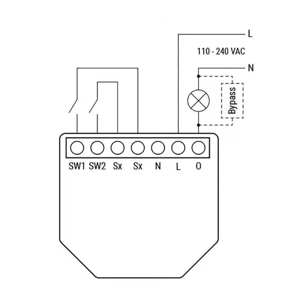 Shelly Bypass es necesario para los dispositivos Shelly que no necesitan un cable neutro para funcionar si la carga que conmutan es inferior a 20 W a 240 VCA.